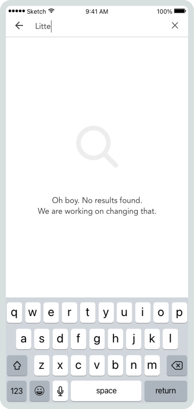 When the search returned no results, the app didn't provide context about what was happening and why, but more damaging, it didn't offer any help to recover from it.